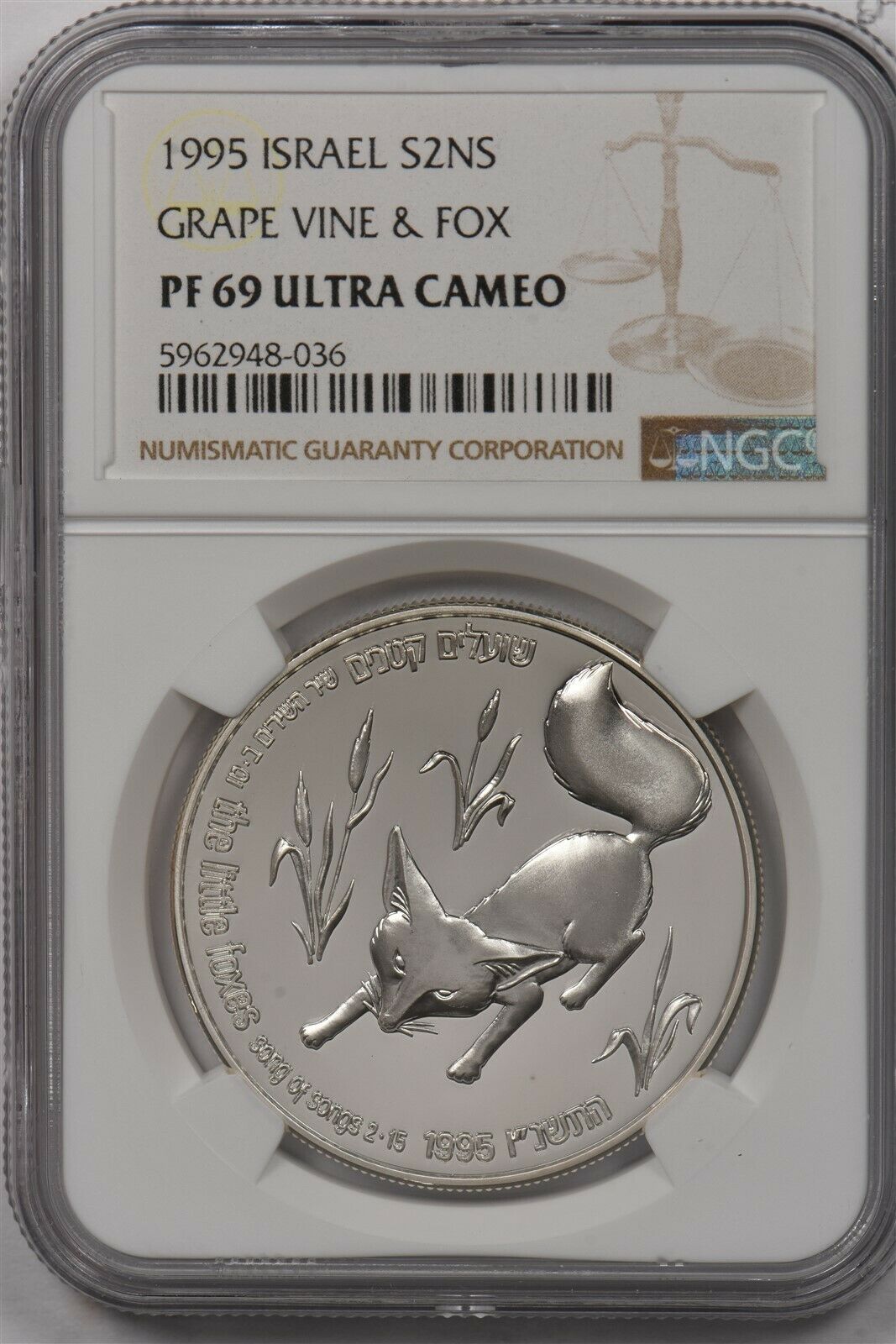 Israel 1995 2 New Sheqalim silver NGC Proof 69UC Grape Vine & Fox NG1494 combine shipping