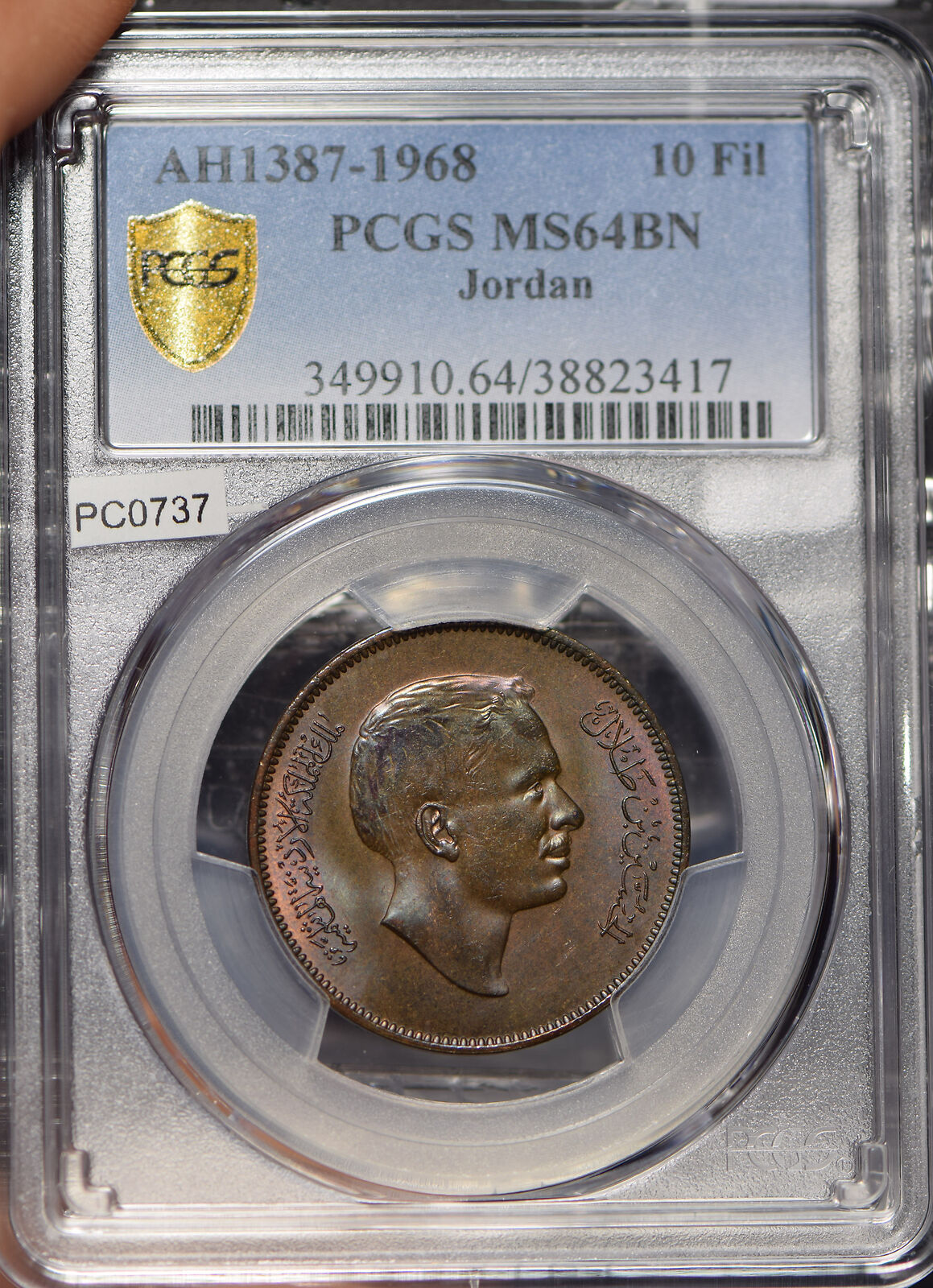 Jordan 1968 AH 1387 10 Fils PCGS MS64BN PC0737 combine shipping