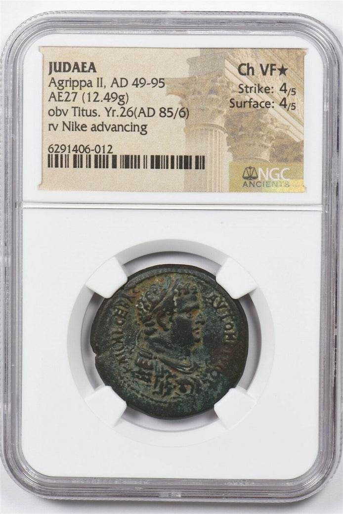 Judaea 49 -95 AD AE27 silver NGC CH VF* 12.49g obv Titus. Yr.26 AD 85/6 rv Nike