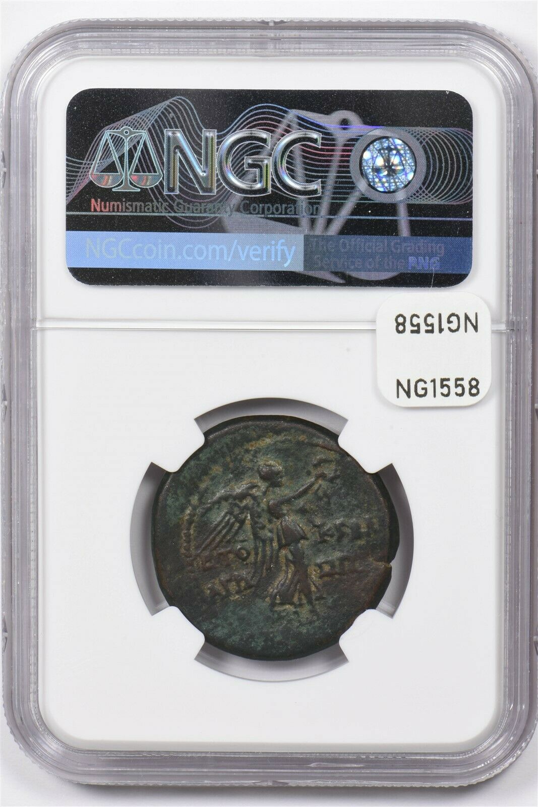 Judaea 49 -95 AD AE27 silver NGC CH VF* 12.49g obv Titus. Yr.26 AD 85/6 rv Nike advancing NG1558 combine shipping
