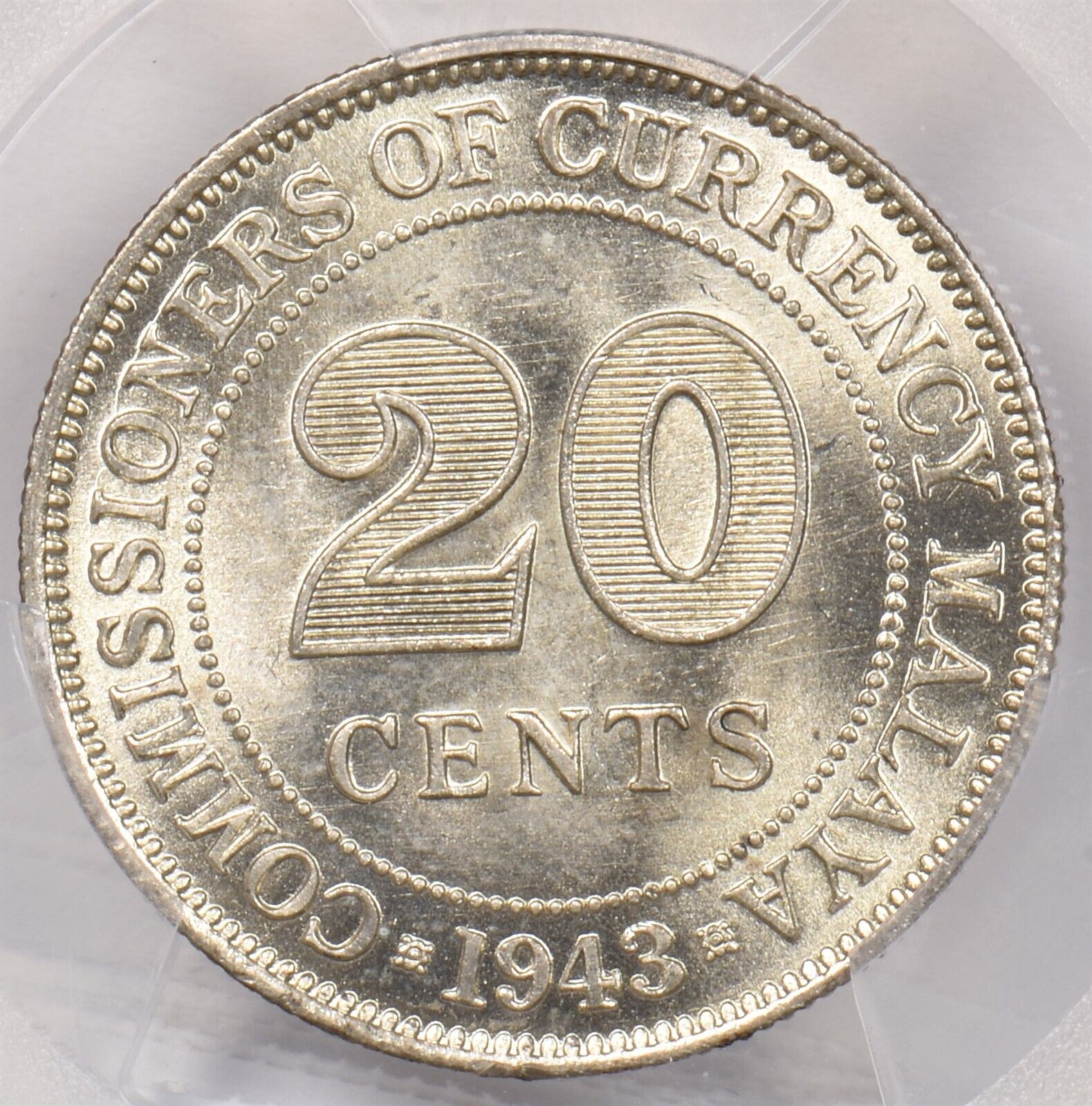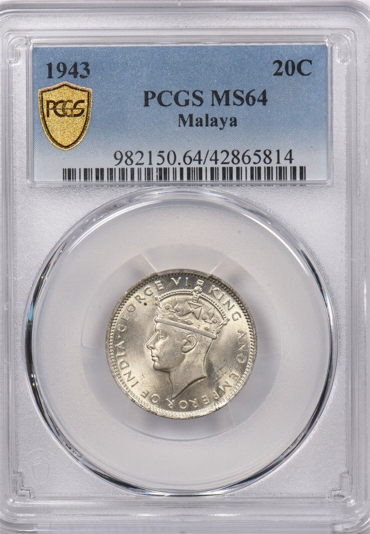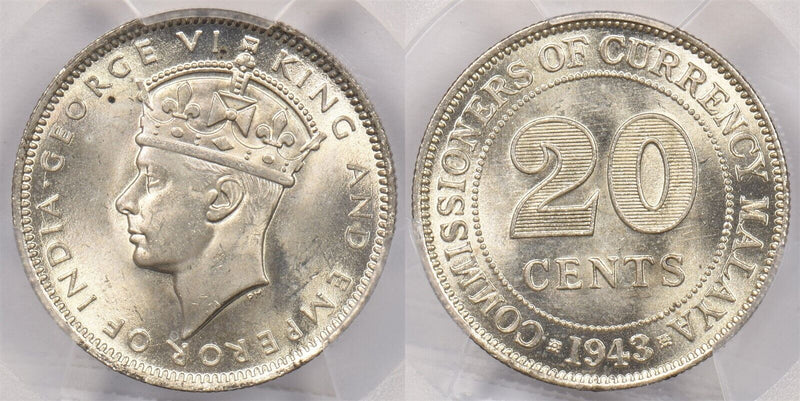 Malaya 1943 20 Cents PCGS MS 64 PC1276 combine shipping