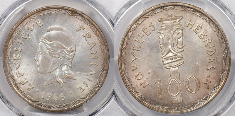 New Hebrides 1966 100 Francs PCGS MS 67 rare condition Lec-59 PC1267 combine shi