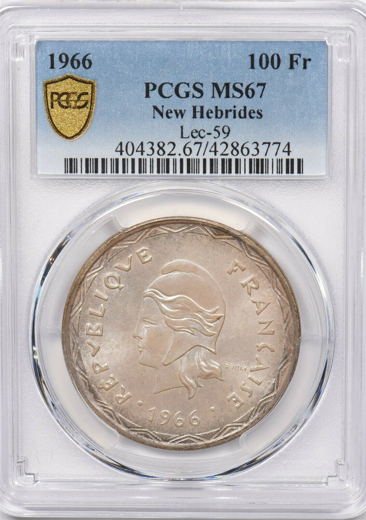 New Hebrides 1966 100 Francs PCGS MS 67 rare condition Lec-59 PC1267 combine shipping