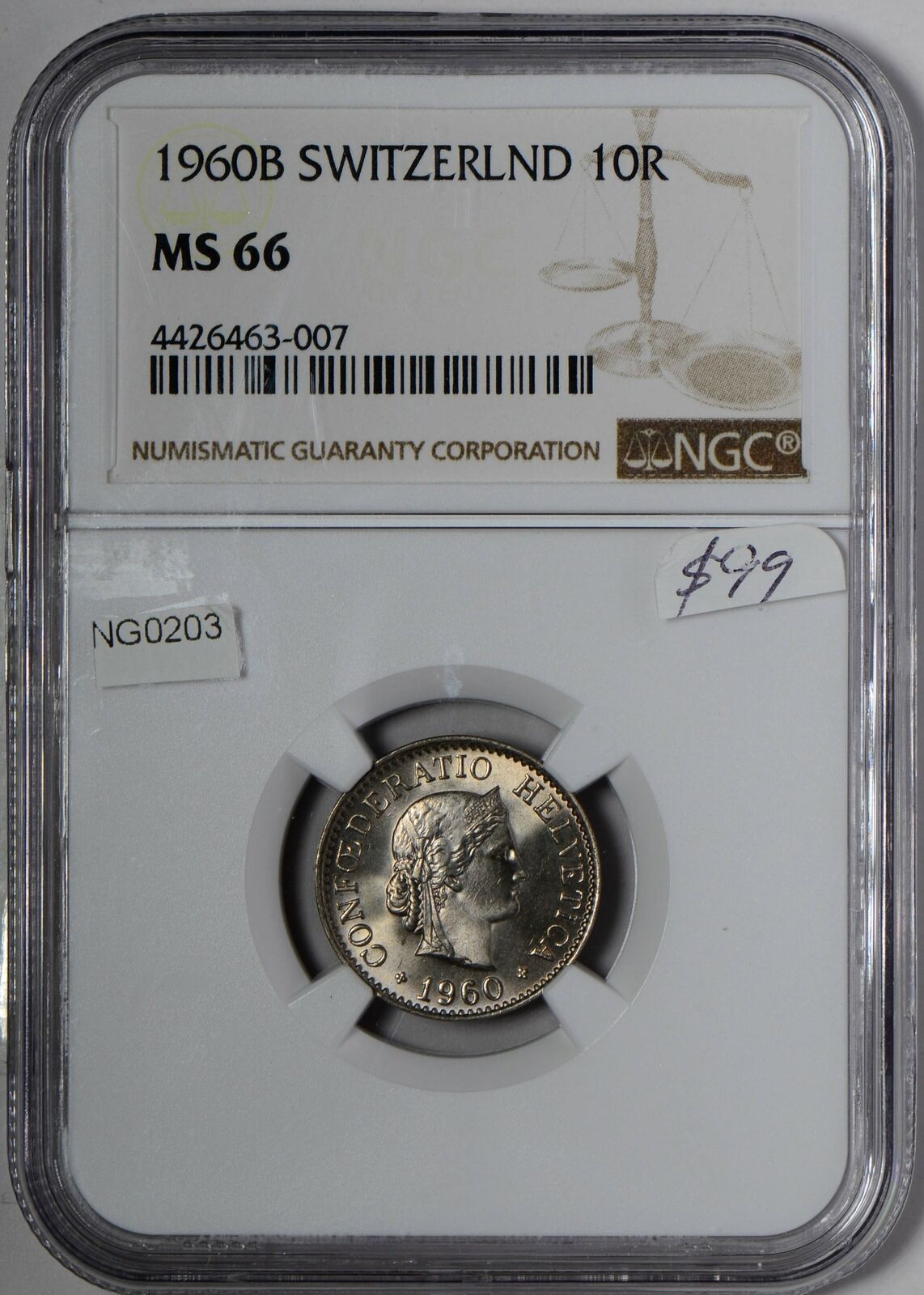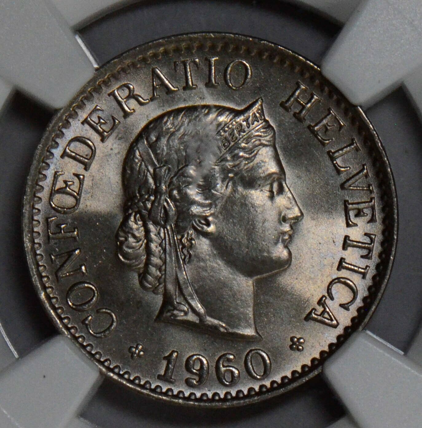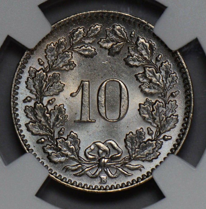 NG0203 Switzerland 1960 B 10 Rappen NGC MS 66 rare in this grade haze on plastic