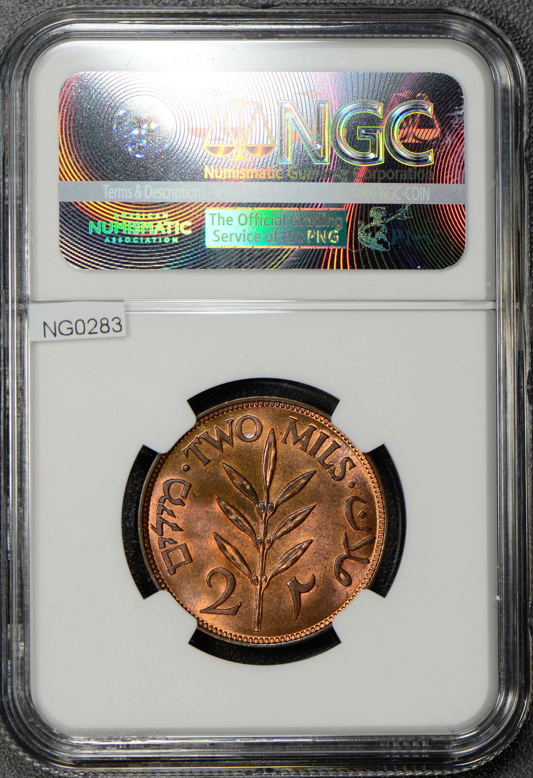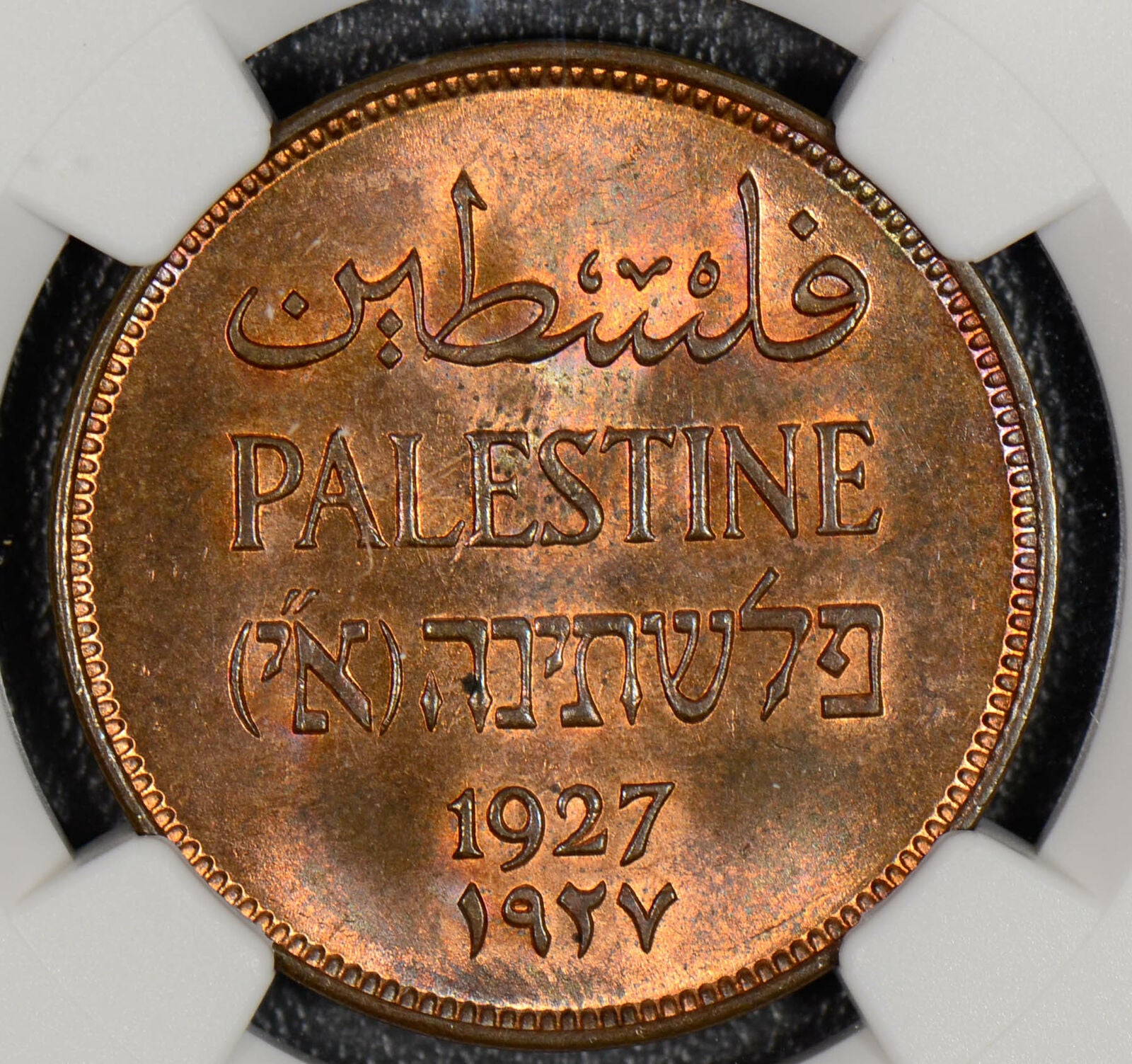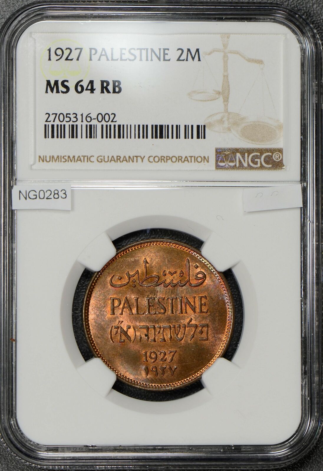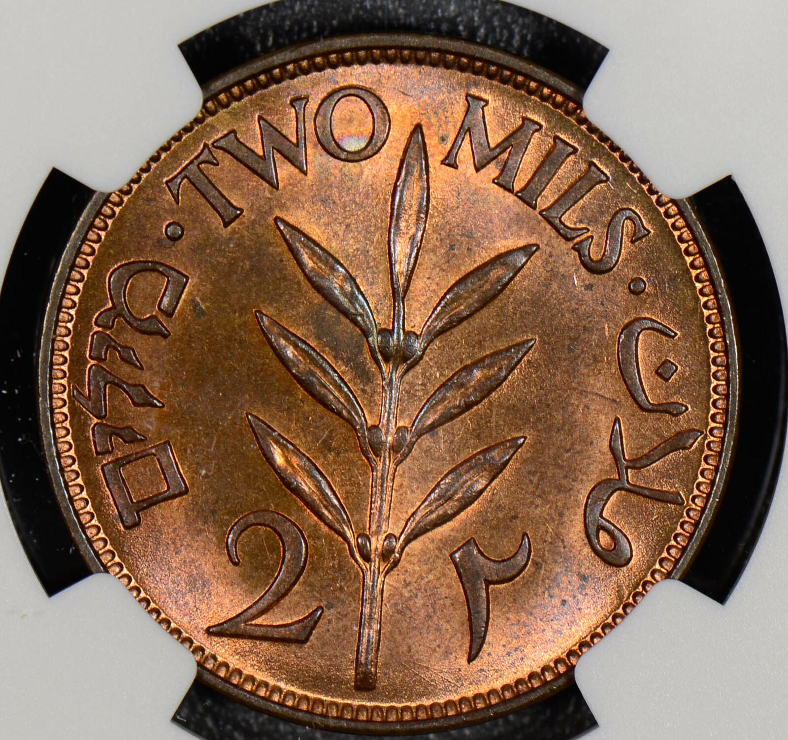 NG0283 Palestine 1927 2 Mils NGC MS 64 RB lustrous rare in this grade combine s