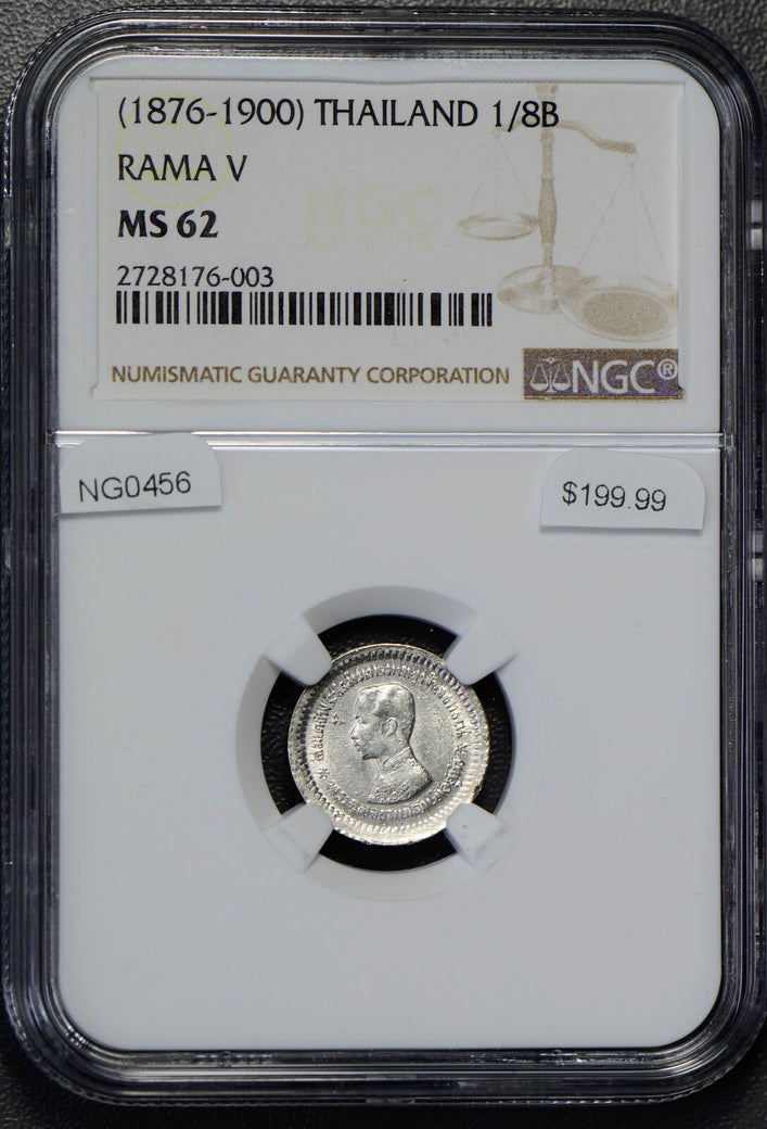 NG0456 Thailand 1876 ~00 1/8 Baht silver NGC MS62 fuang rare in this grade combi