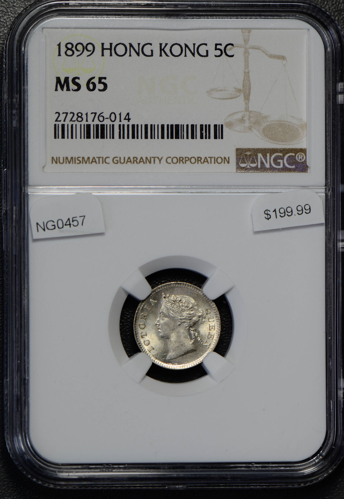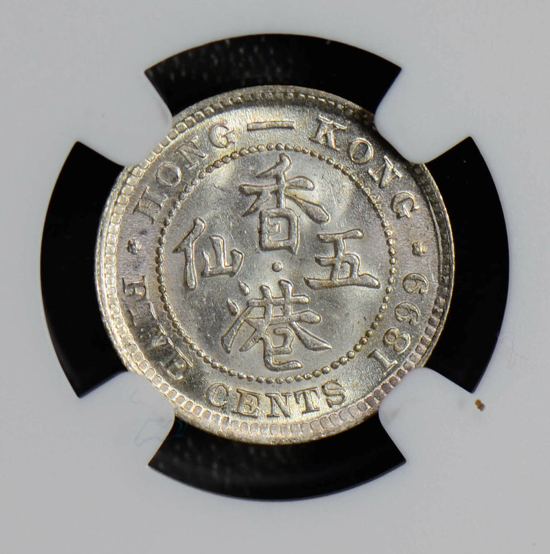 NG0457 Hong Kong 1899 5 Cents silver NGC MS65 rare in this grade combine shipping