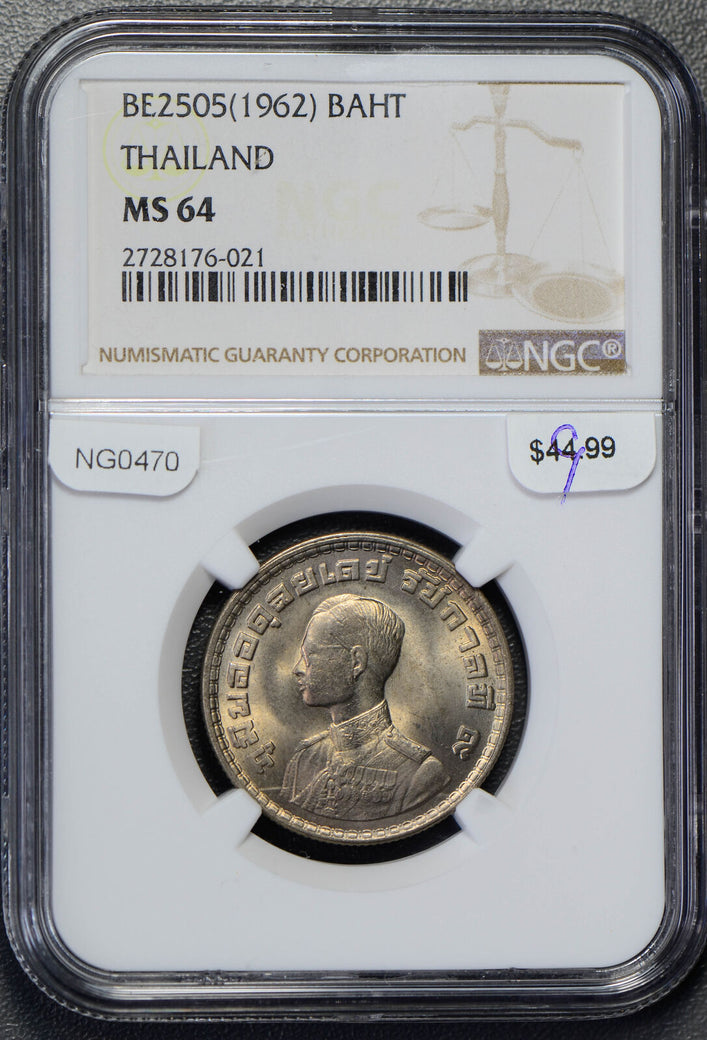 NG0470 Thailand 1962 Baht NGC MS64 combine shipping
