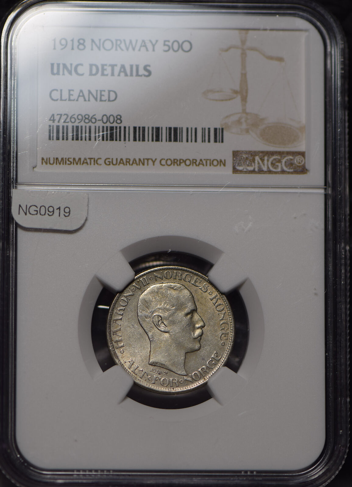Norway 1918 50 Ore Lion animal NGC UNC uncirculated NG0919 combine shipping