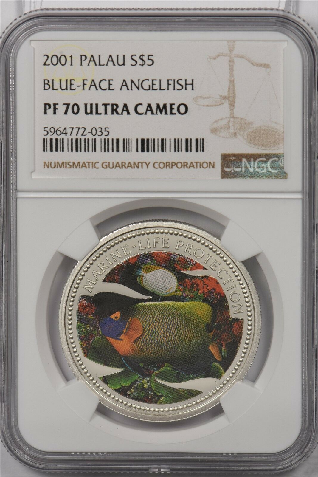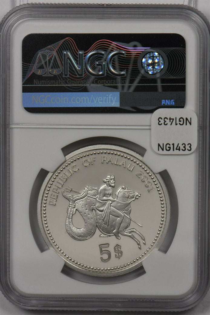 Palau 2001 5 Dollars silver NGC Proof 70UC Blue Face Angelfish Perfect 70 NG1433