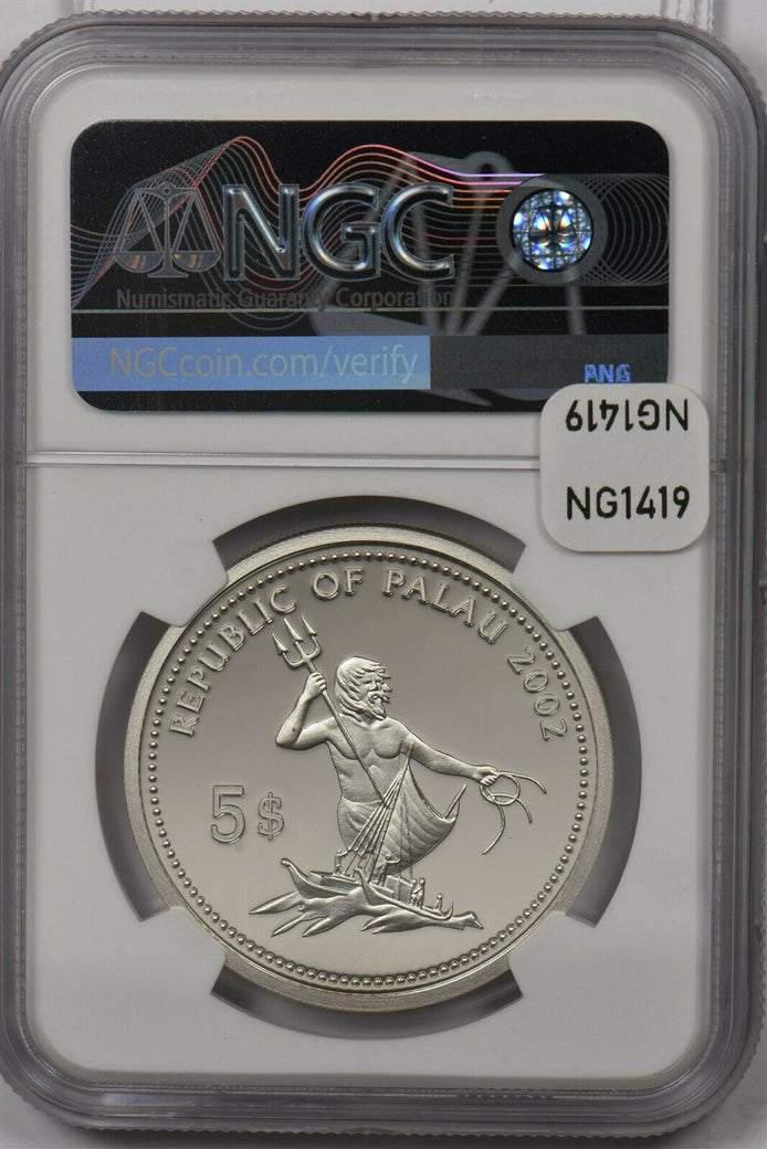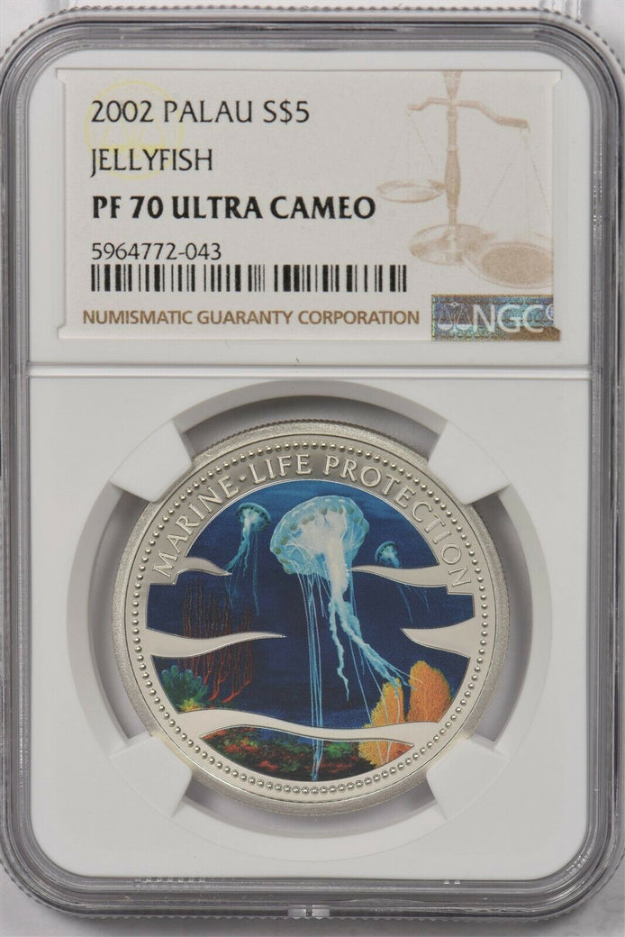 Palau 2002 5 Dollars silver NGC Proof 70UC Jellyfish Perfect 70 NG1419 combine s