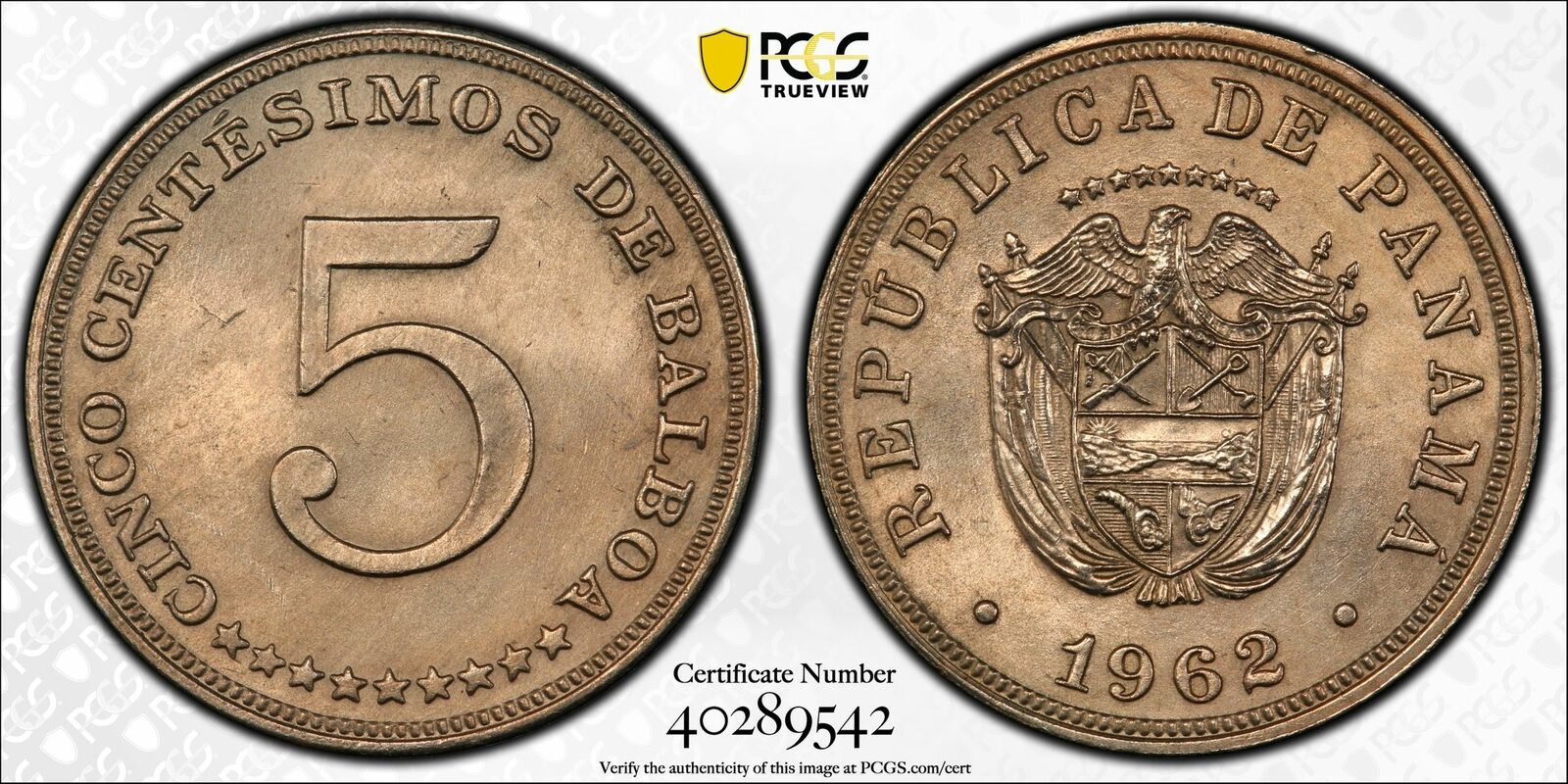 Panama 1962 5 Centesimos Eagle animal PCGS MS64 PC1039 combine shipping