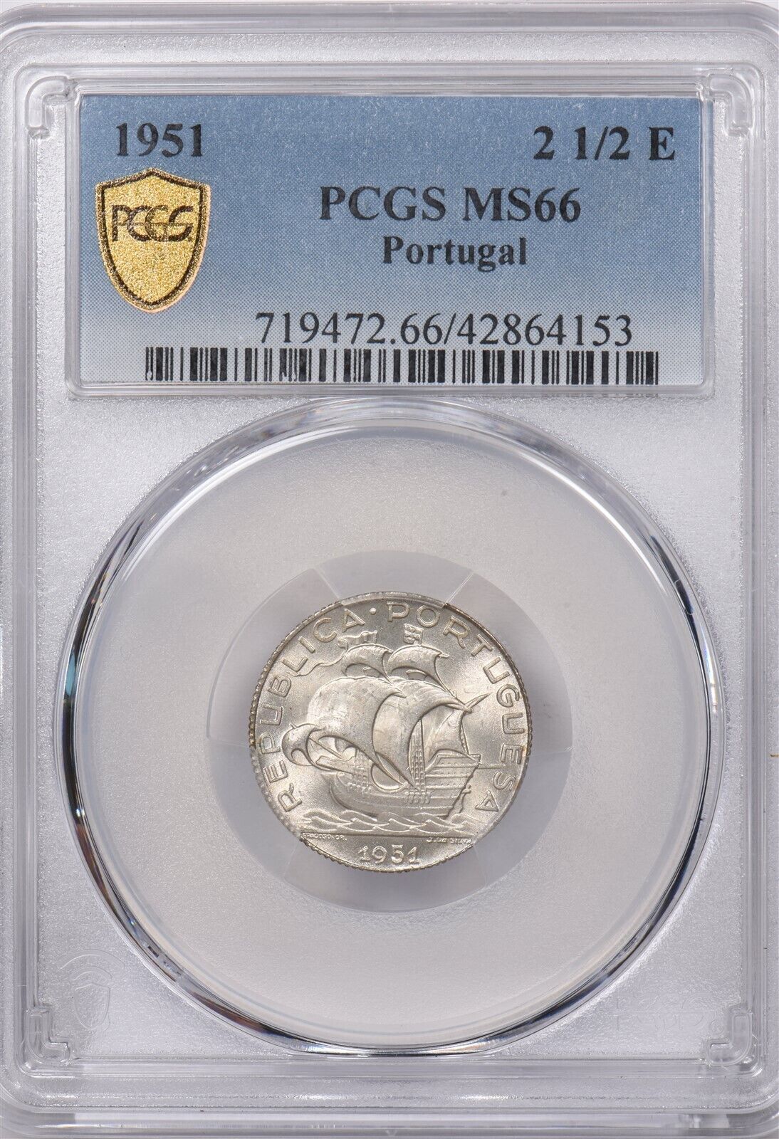 Portugal 1951 2 1/2 Escudos PCGS MS 66 finest known None Higher PC1336 combine shipping