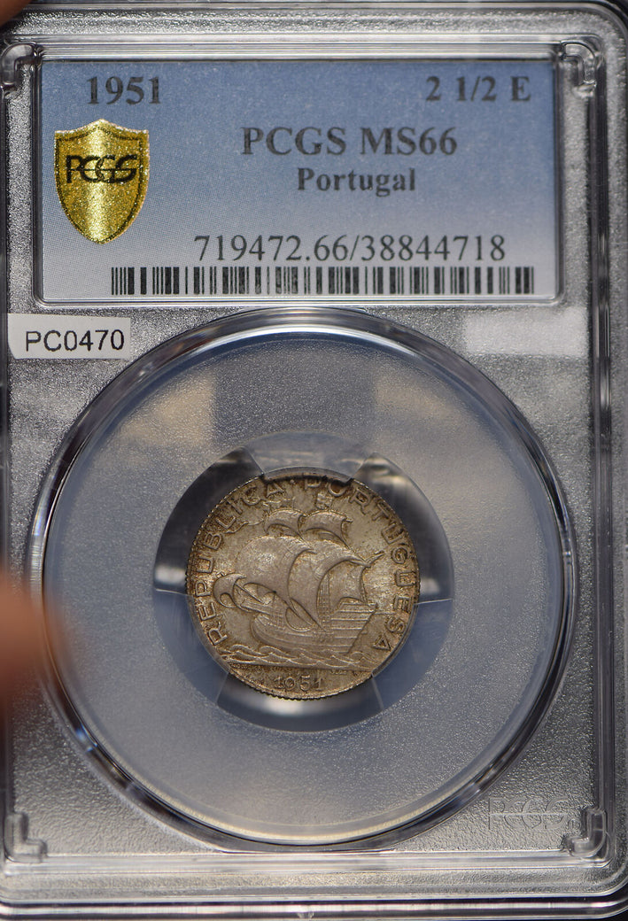 Portugal 1951 2.5 Escudos 2 1/2 PCGS MS66 frosty lustrous rare gem grade PC0470 combine shipping