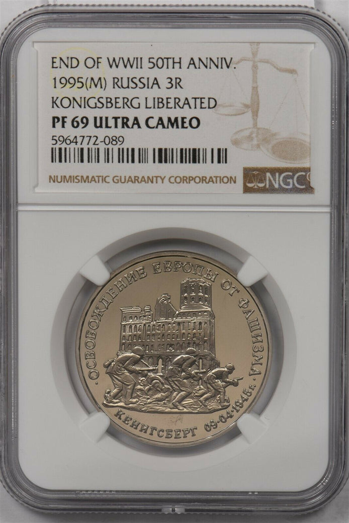 Russia USSR 1995 M 3 Roubles NGC Proof 69UC End of World War II 50th Anniversary Konigsberg Liberated NG1395 combine shipping