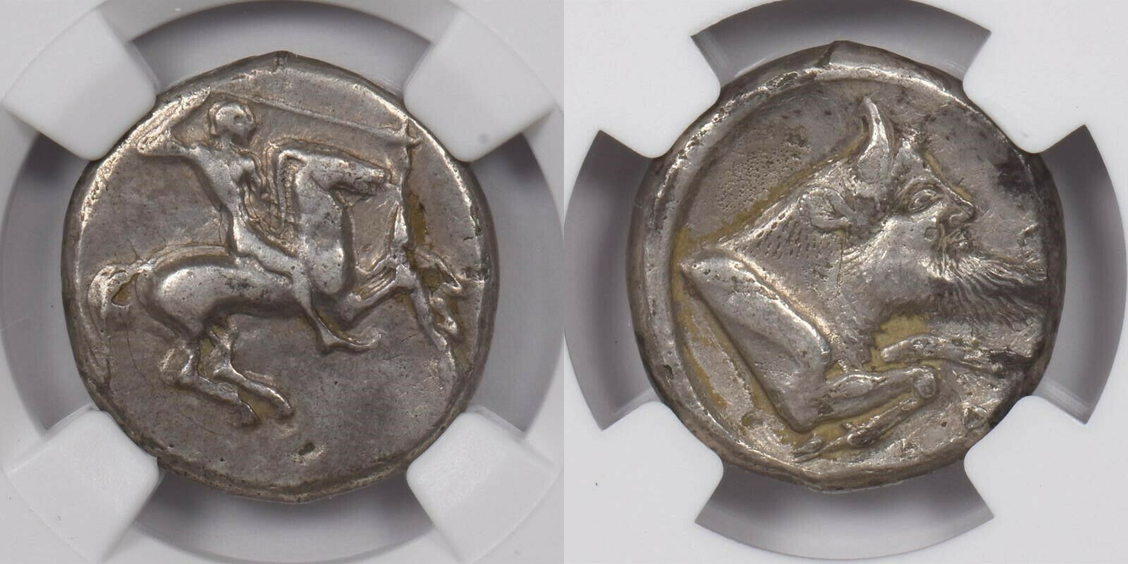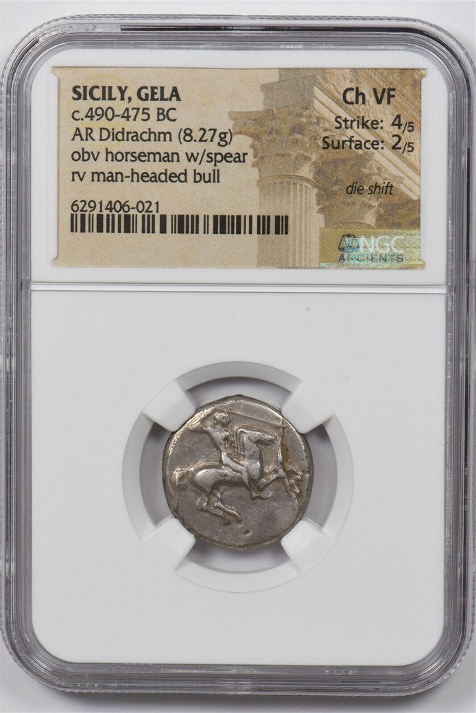 Sicily, Gela 490 -475 c. BC AR Didrachm silver NGC CH VF 8.27g obv horseman w/spear rv man-headed bull NG1546 combine shipping