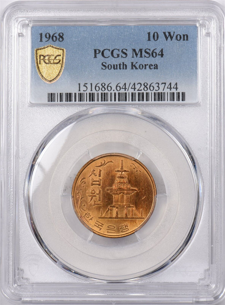 South Korea 1968 10 Won PCGS MS 64 PC1412 combine shipping