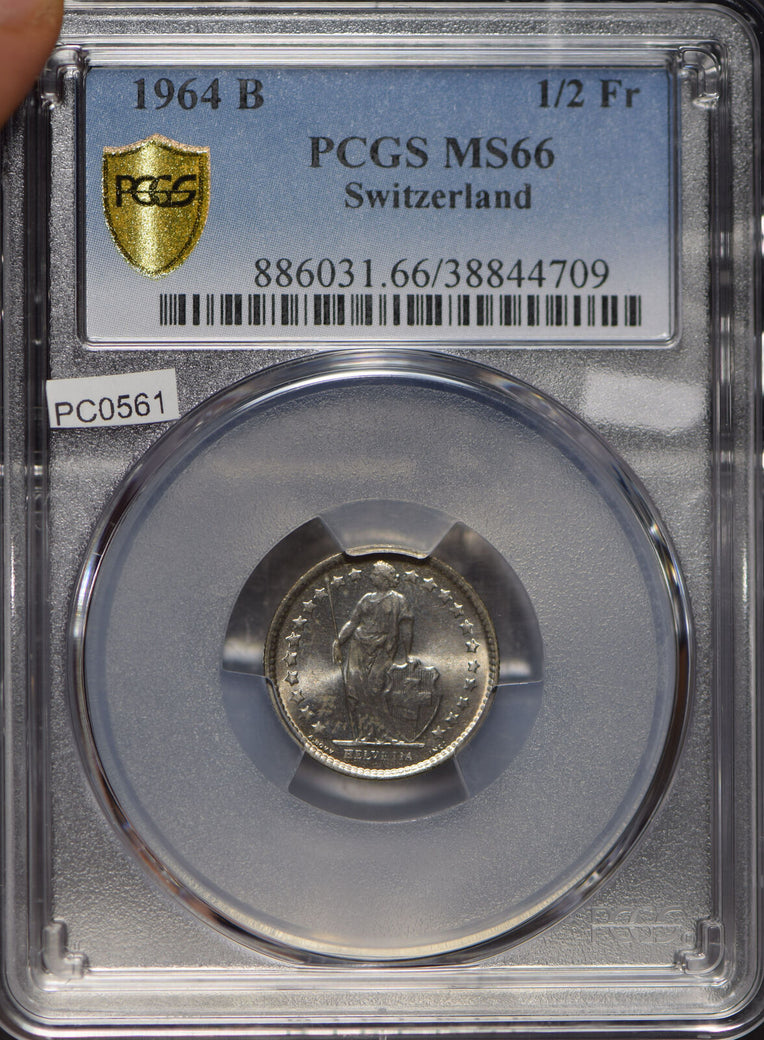 Switzerland 1964 1/2 Franc PCGS MS66 blasting luster rare grade PC0561 combine s