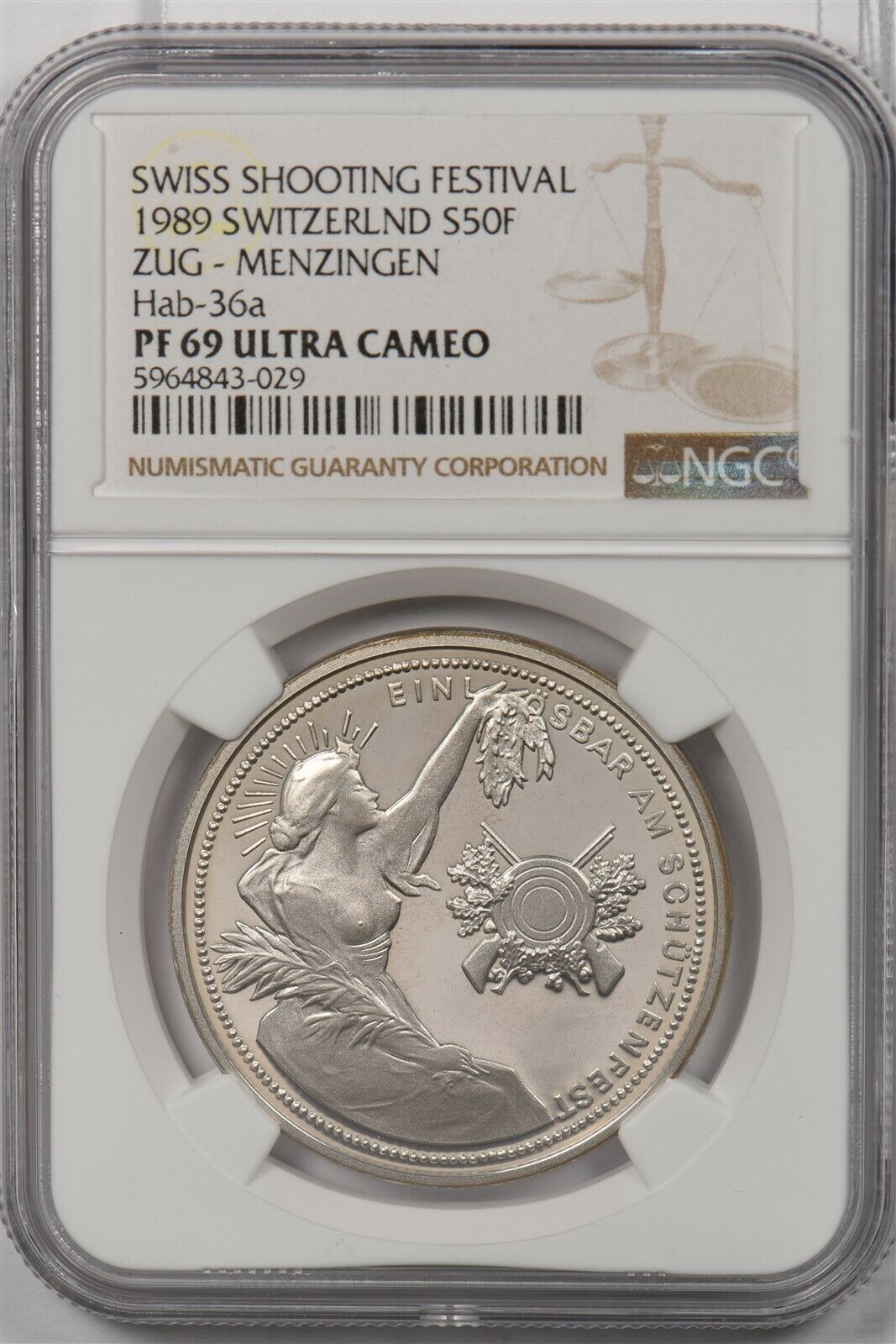 Switzerland 1989 50 Francs silver NGC PF 69UC Swiss Shooting Festival Zug-Menzingen Hab-36a NG1323 combine shipping