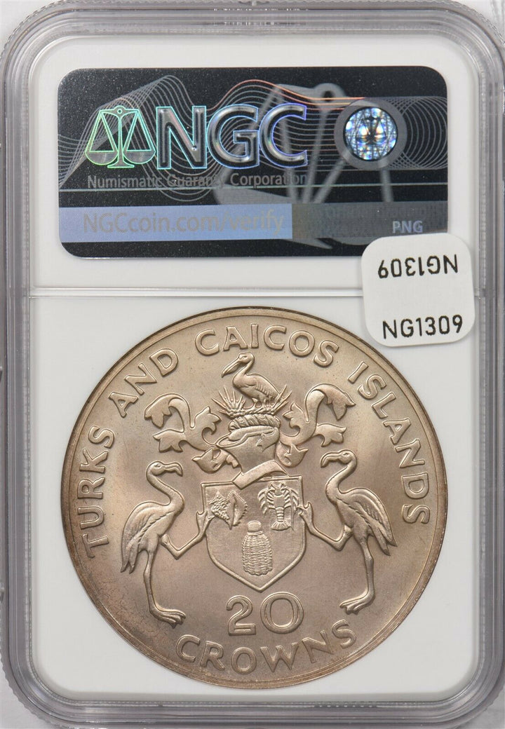 Turks and Caicos Islands 1974 20 Crowns silver NGC MS68 Winston churchill NG1309 combine shipping