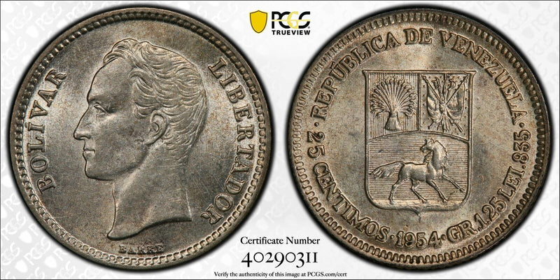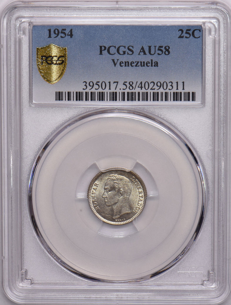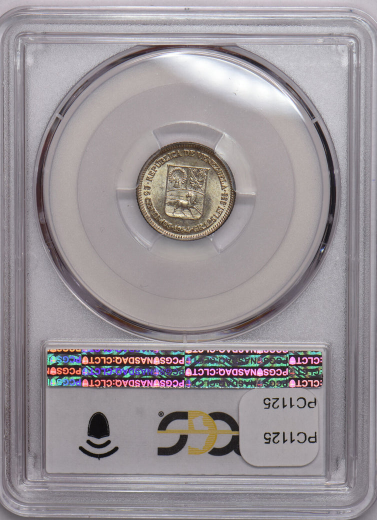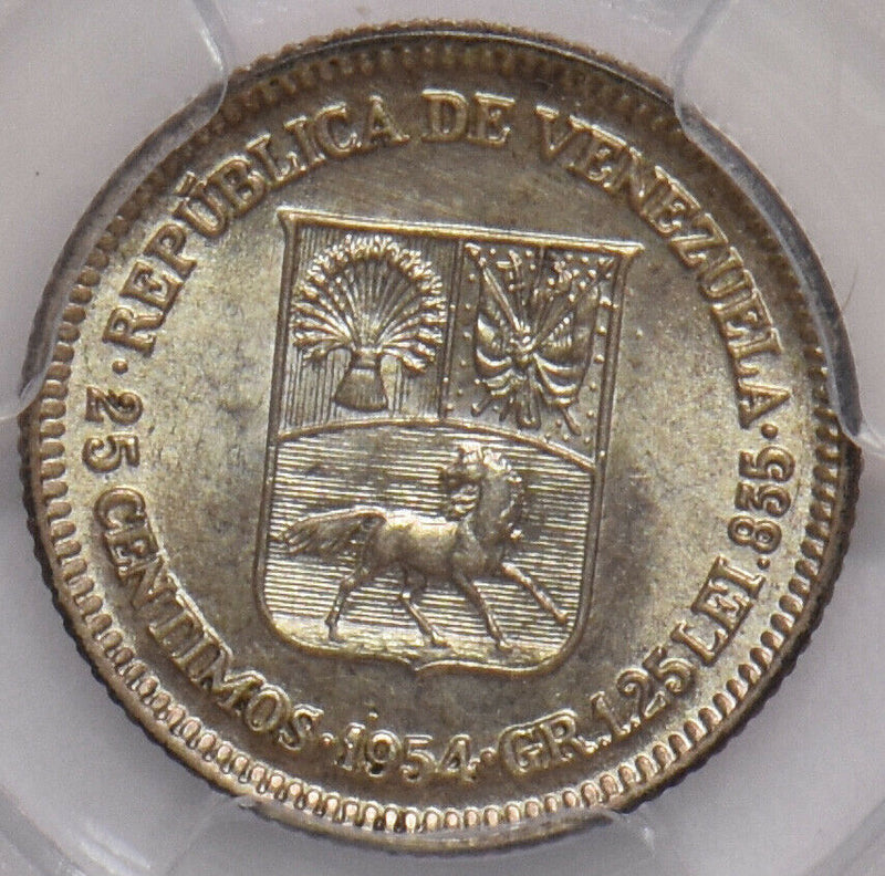 Venezuela 1954 25 Centimos Horse animal PCGS AU58 PC1125 combine shipping