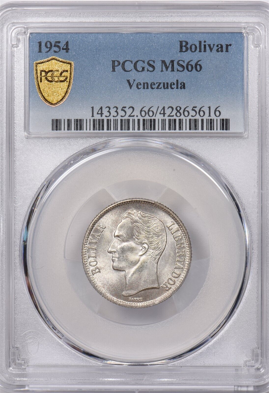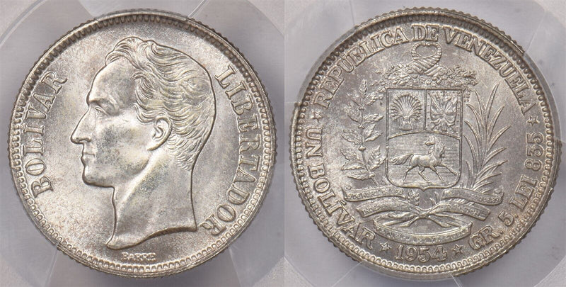 Venezuela 1954 Bolivar Horse animal PCGS MS 66 Finest Known Pop. 1 PC1330 combi