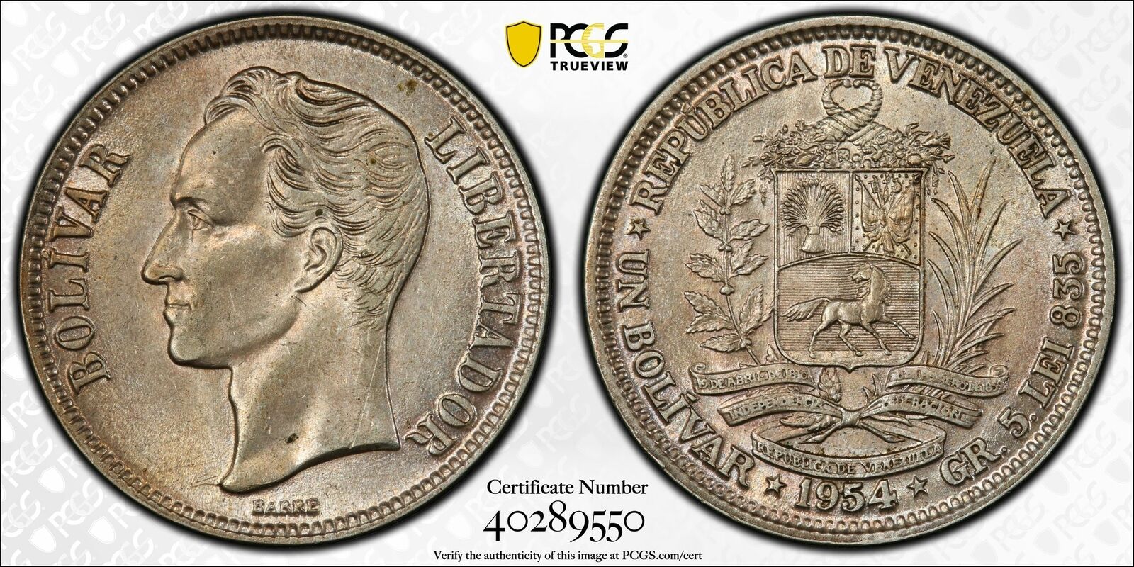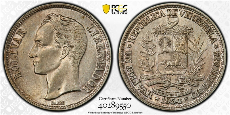 Venezuela 1954 Bolivar Horse animal PCGS UNC PC1035 combine shipping
