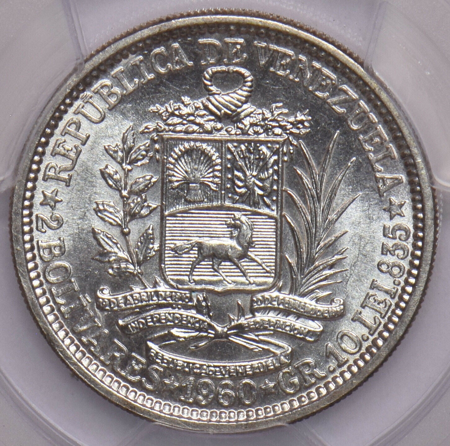 Venezuela 1960 2 Bolivares Horse animal PCGS AU55 PC1072 combine shipping
