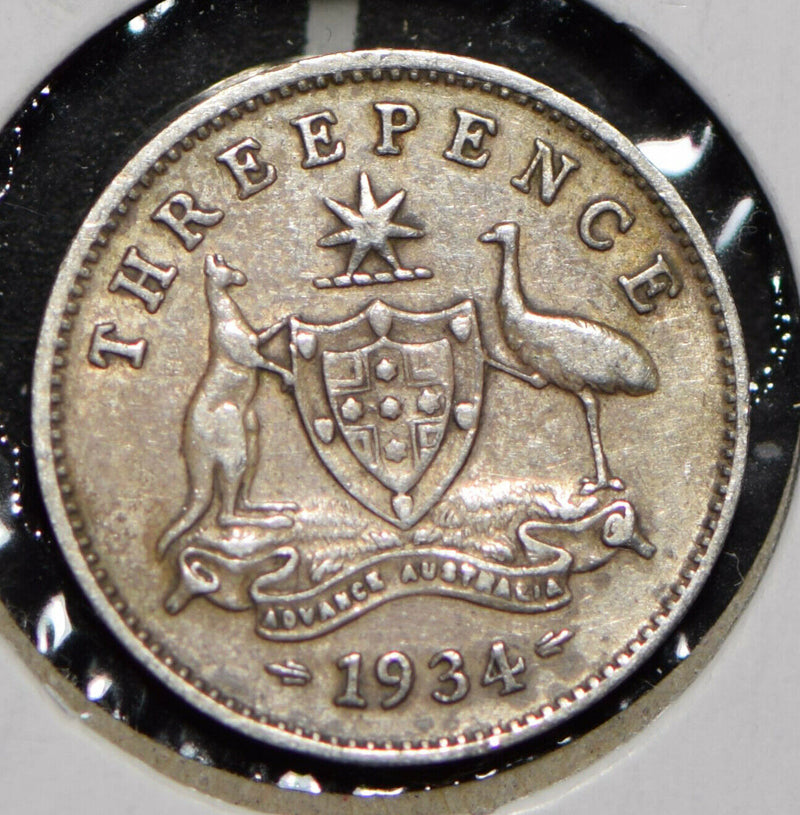 Australia 1934 3 Pence Kangaroo animal Emu 191345 combine shipping