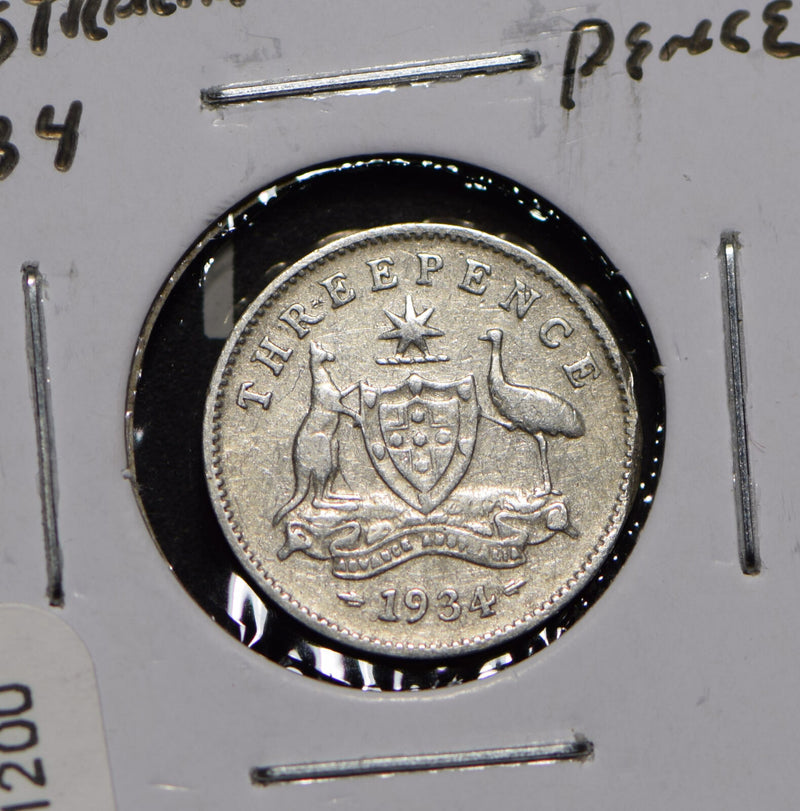 Australia 1934 3 Pence Kangaroo animal Moorhen 191200 combine shipping