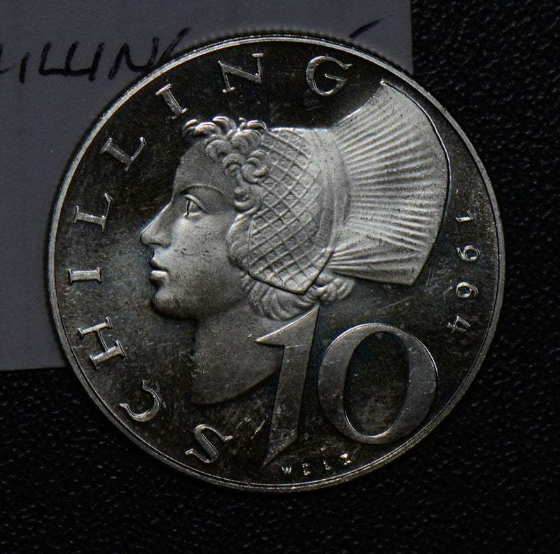 Austria 1964 10 Shillings silver UNC 190516 combine shipping