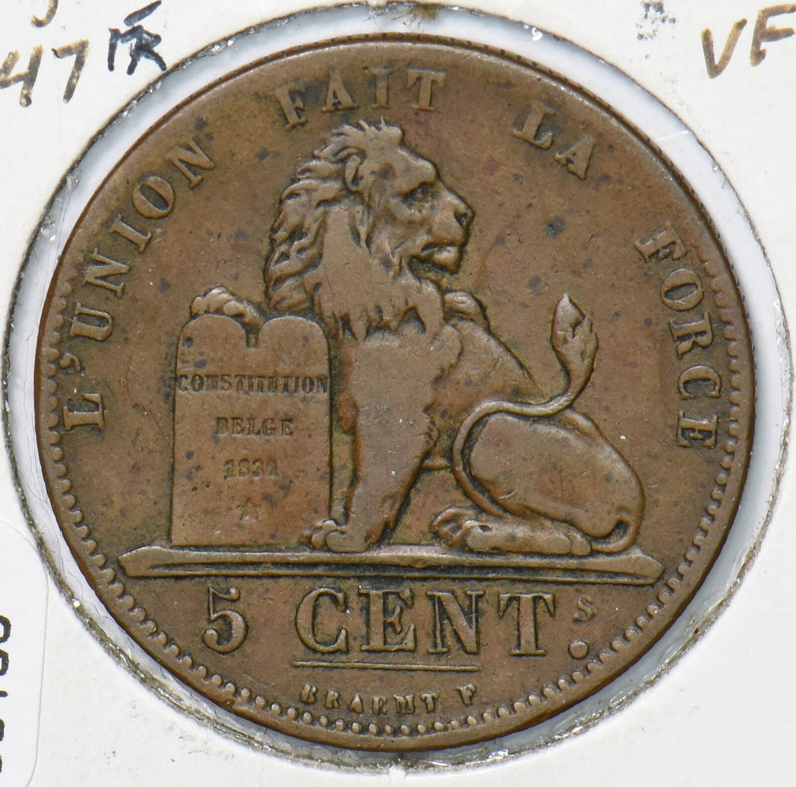 Belgium 1847 5 Centimes Lion animal 490133 combine shipping