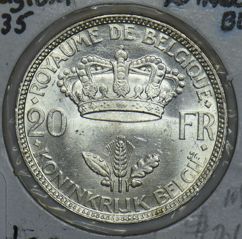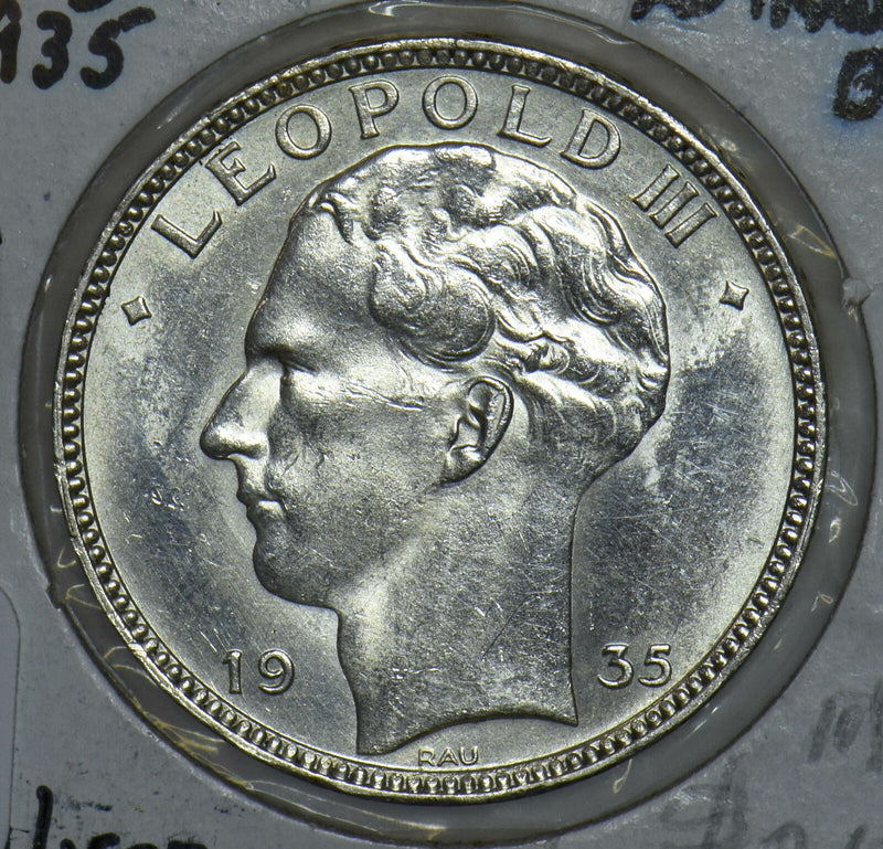 Belgium 1935 Leopold III 20 Francs Silver 290895 combine shipping