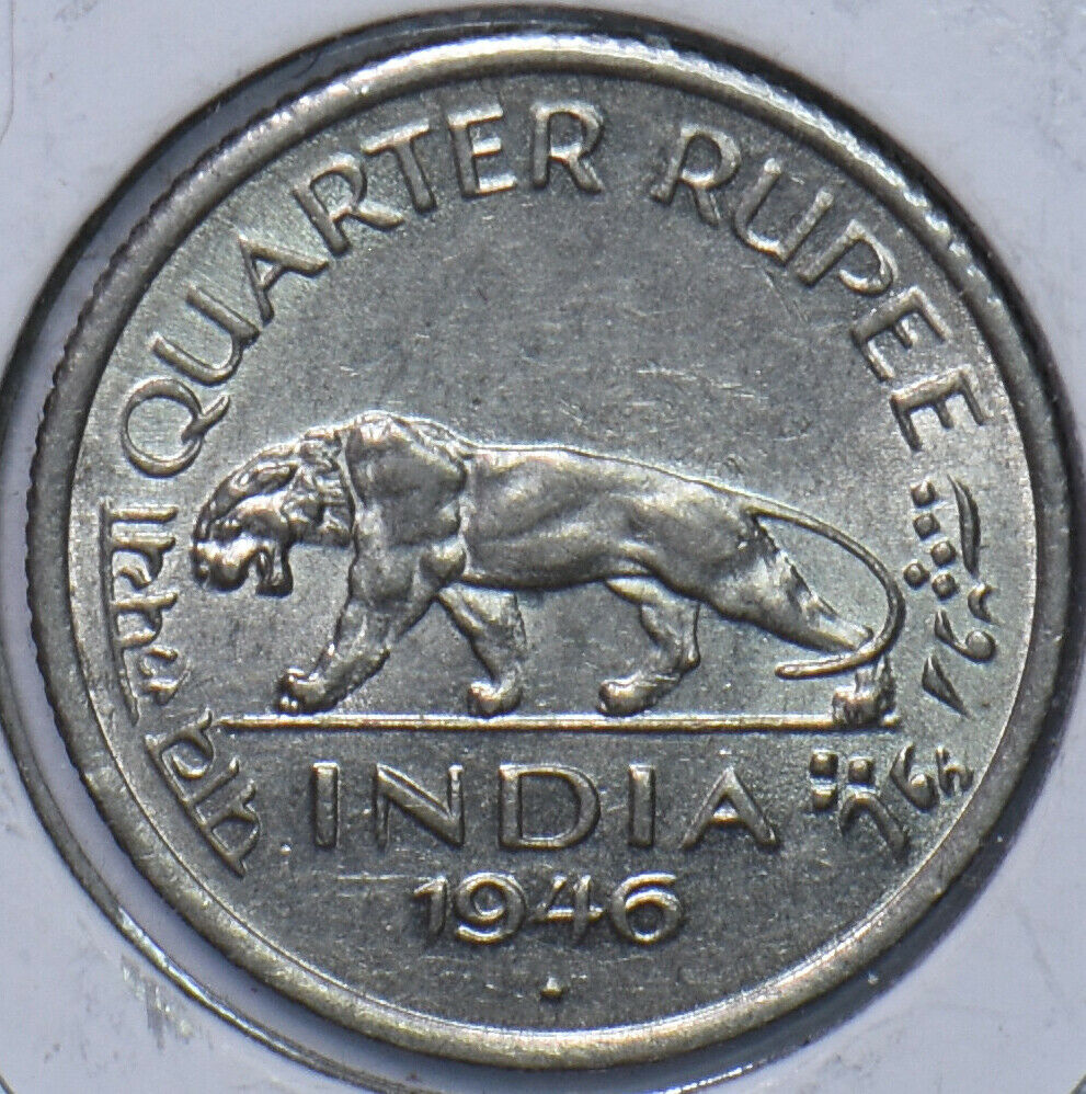 British India 1946 B 1/4 Rupee Lion animal 194485 combine shipping