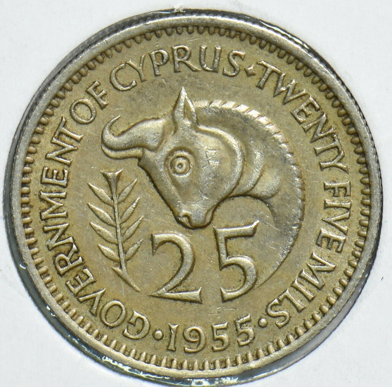 Cyprus 1955 25 Mils Bullanimal 904463 combine shipping