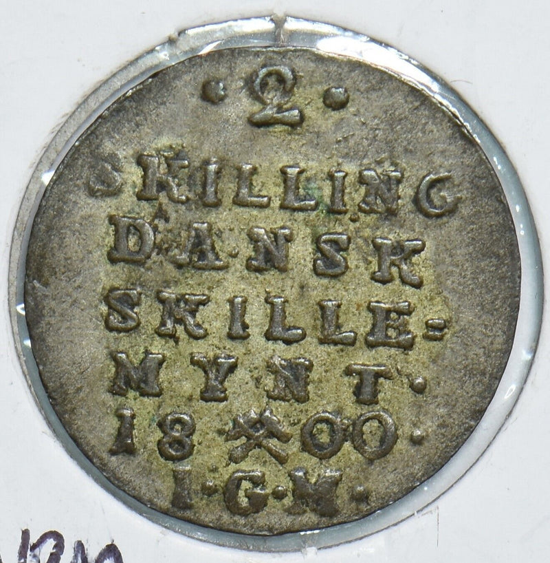 Denmark 1800 2 Skilling Silver uneven planchet 491561 combine shipping