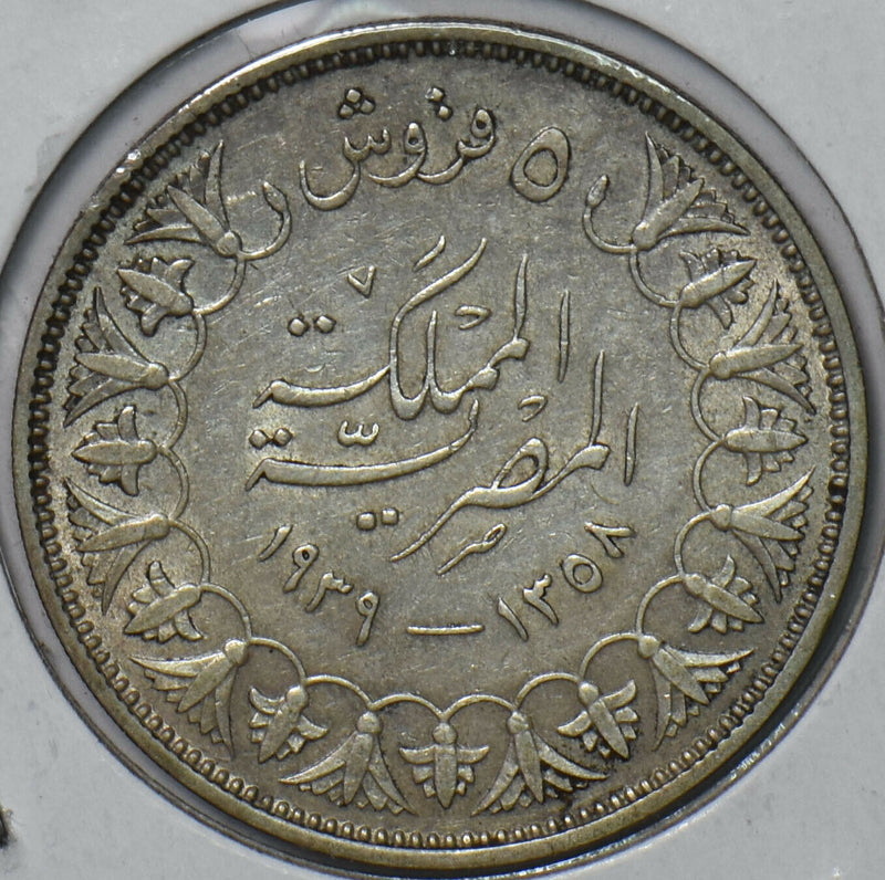 Egypt 1939 AH 1358 5 Piastres 296633 combine shipping