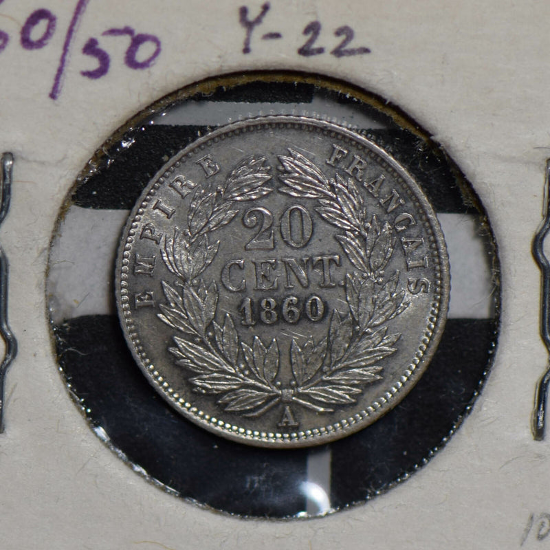 France 1860 /50 silver 20 Centimes rare this grade F0121 combine shipping