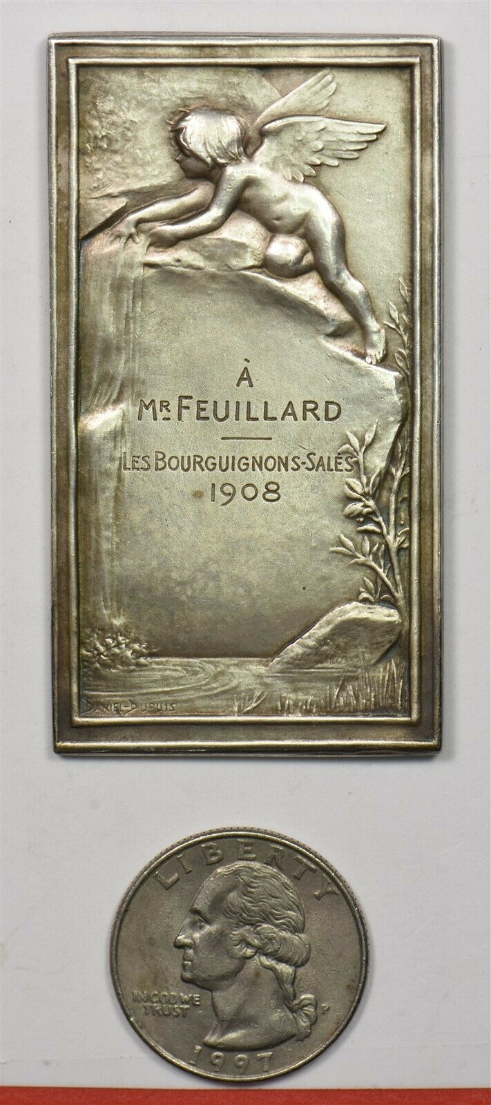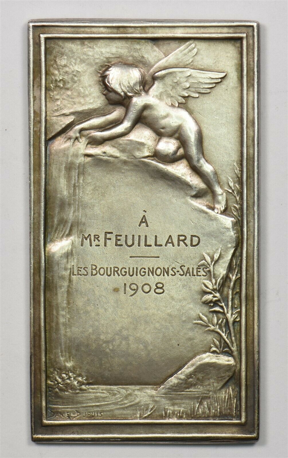 France 1908 UNC Art Nouveau. Silver plaque. Stands nude maiden drnking water fr