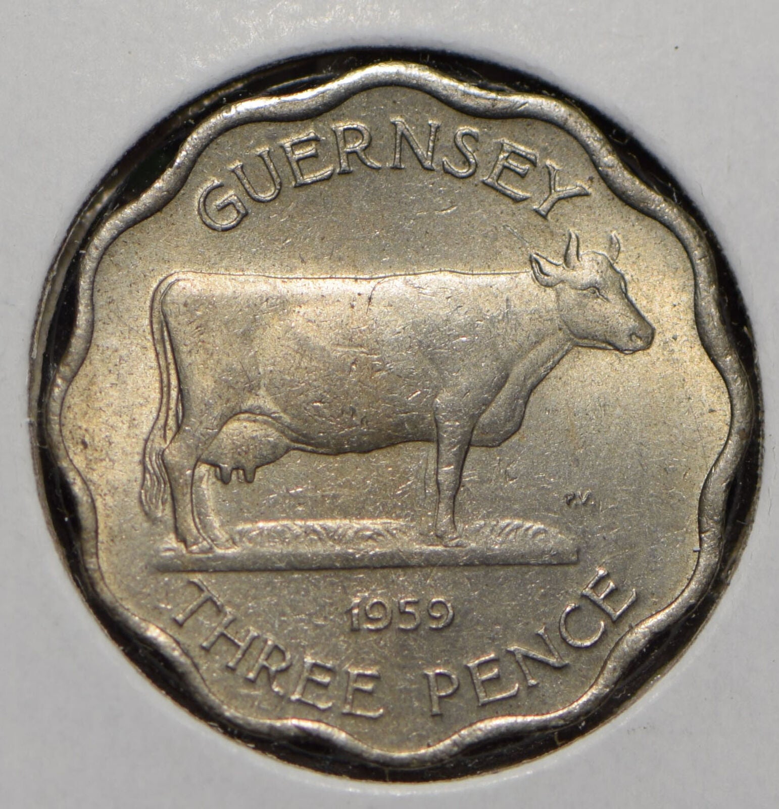 Guernsey 1959 3 Pence Cow animal 191179 combine shipping