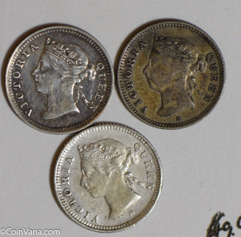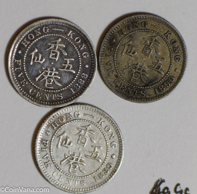 Hong Kong 1888 /1889/1890 5 Cents silver lot of 3 coins H0148 combine shipping