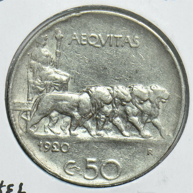 Italy 1920 50 Centesimi Lion animal Nickel 198054 combine shipping