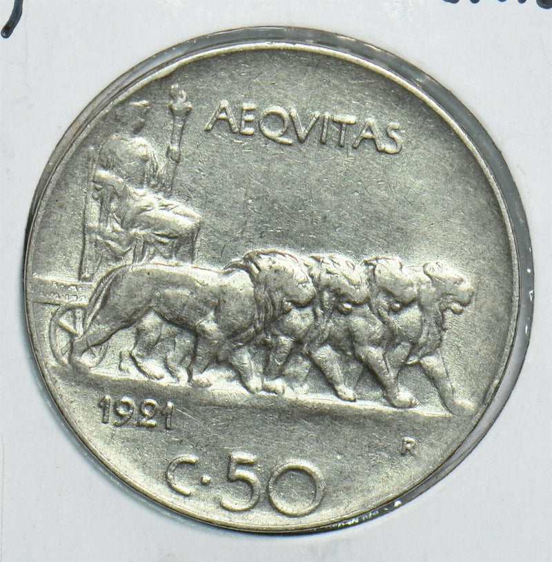 Italy 1921 50 Centesimi Lion animal 198047 combine shipping