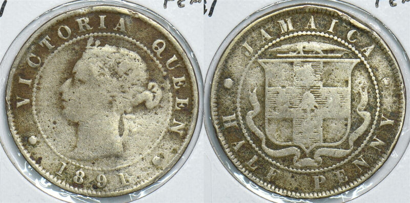 Jamaica 1891 1/2 Penny 153838 combine shipping