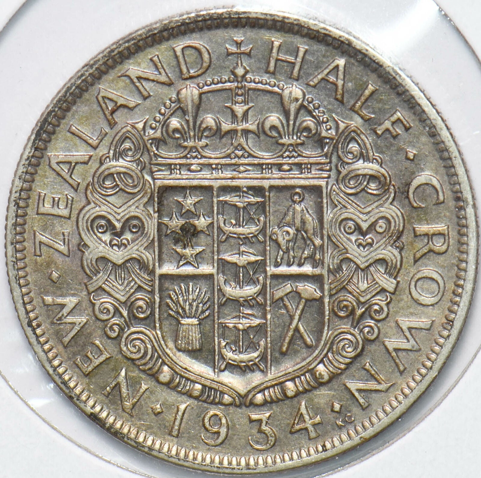 New Zealand 1934 George V 1/2 Crown Ram animal 192199 combine shipping