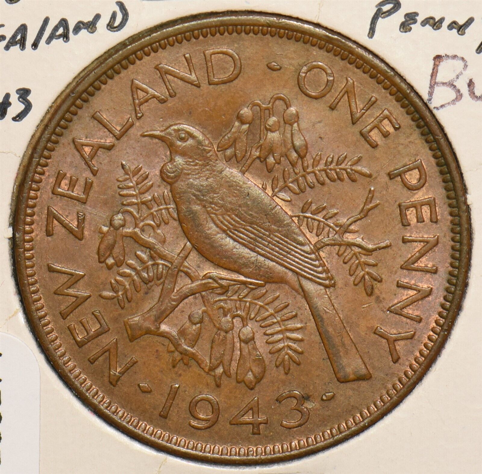 New Zealand 1943 Penny BU Tui Bird 299274 combine shipping