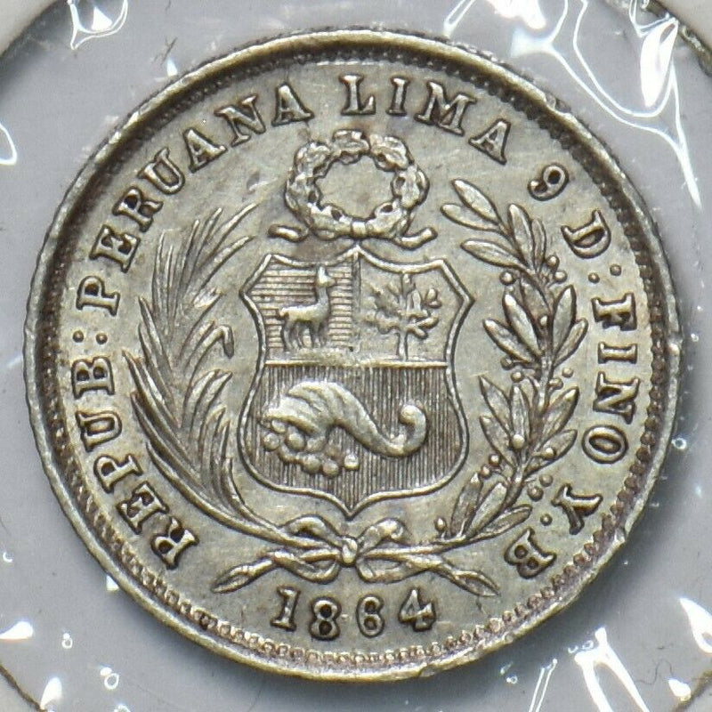 Peru 1864 1/2 Dinero 295727 combine shipping