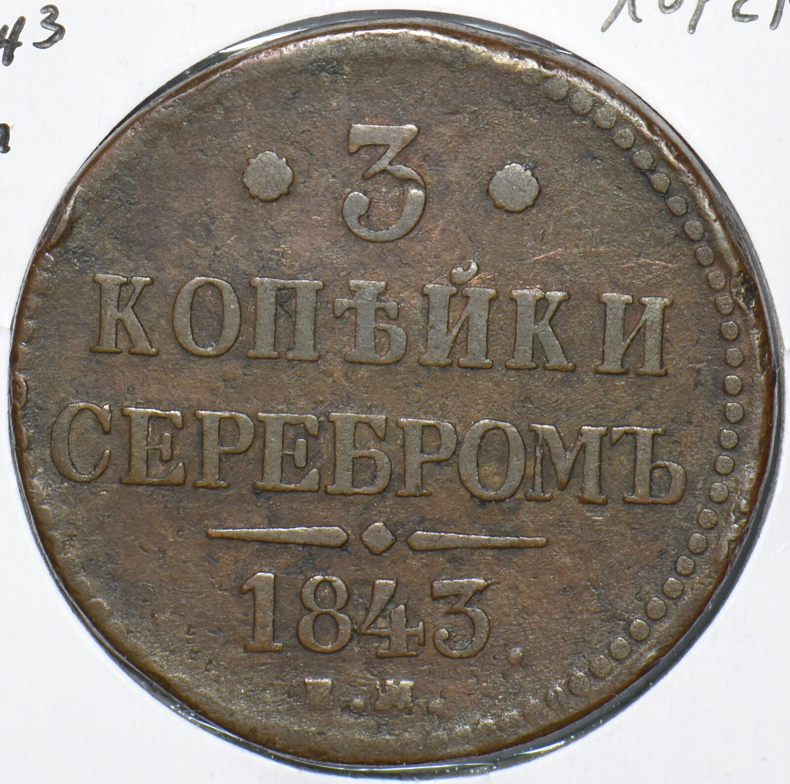 Russia Empire 1843 EM 3 Kopek 295101 combine shipping