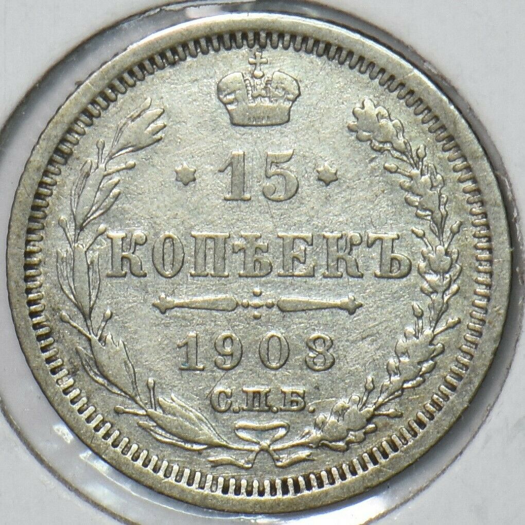 Russia Empire 1908 15 Kopeks 151055 combine shipping