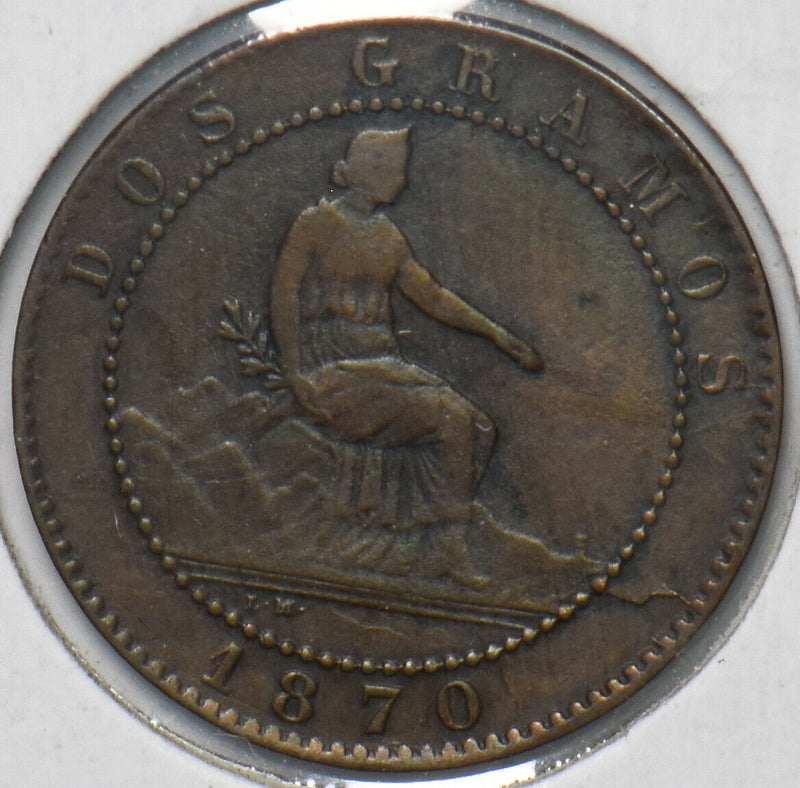 Spain 1870 2 Centimos Lion animal 902506 combine shipping